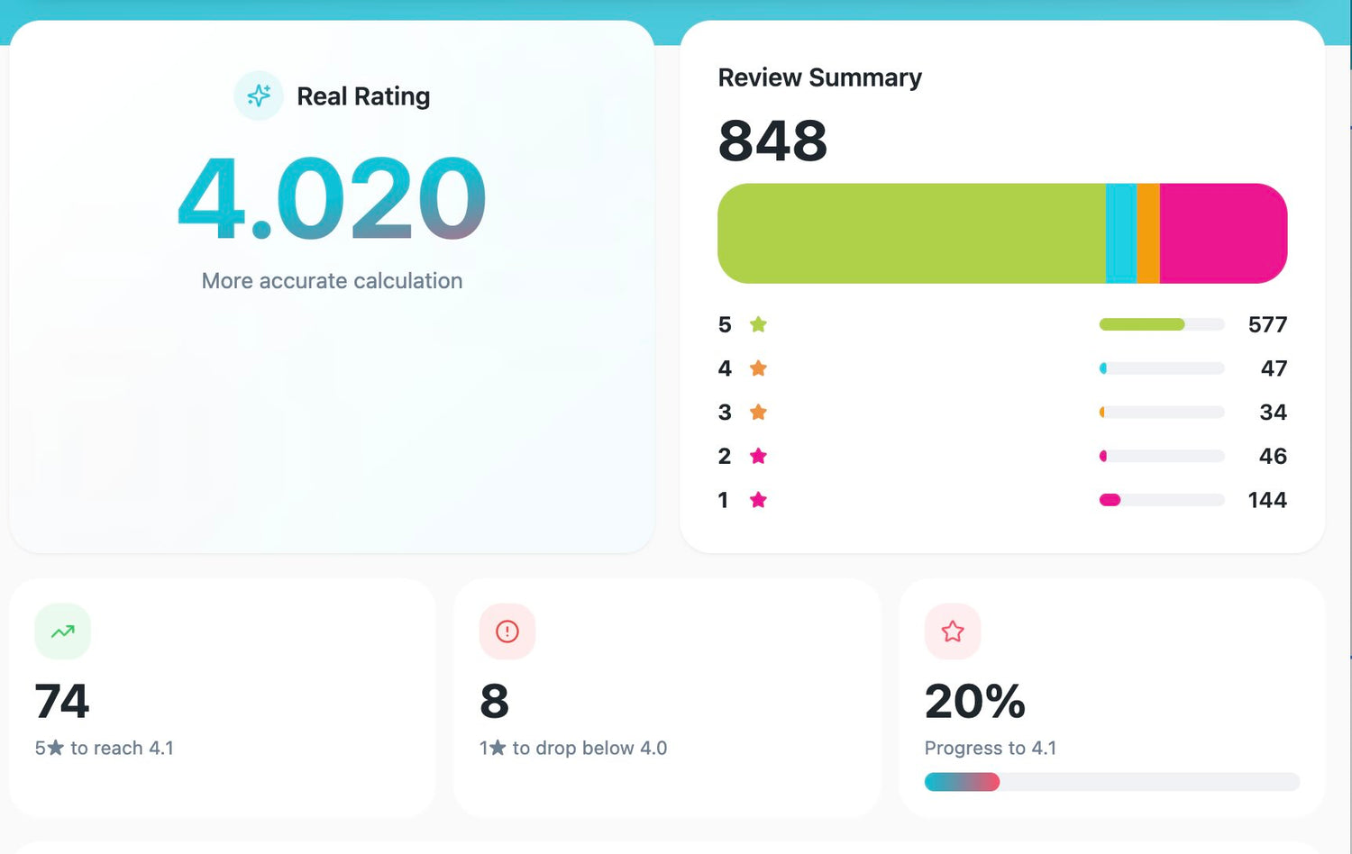 You see 4.0, but not how close you are to 4.1 or how many bad reviews could drop you down.